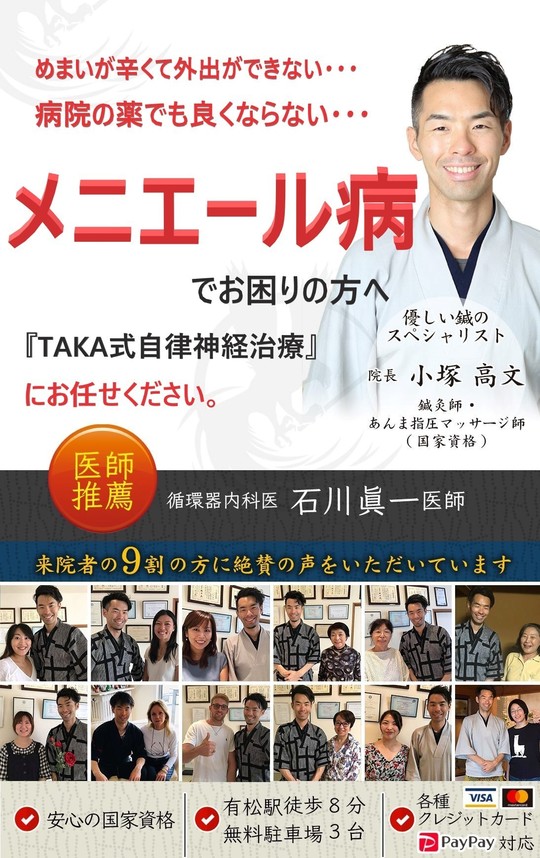 メニエール病 メニエール症候群 名古屋市緑区の自律神経を整える鍼灸院 鍼灸taka 優しい刺激で初めても安心