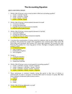 Accounting Equation Quiz The Accounting Equation Quiz 1 Multiple Choice Which Of The Following Is Studocu